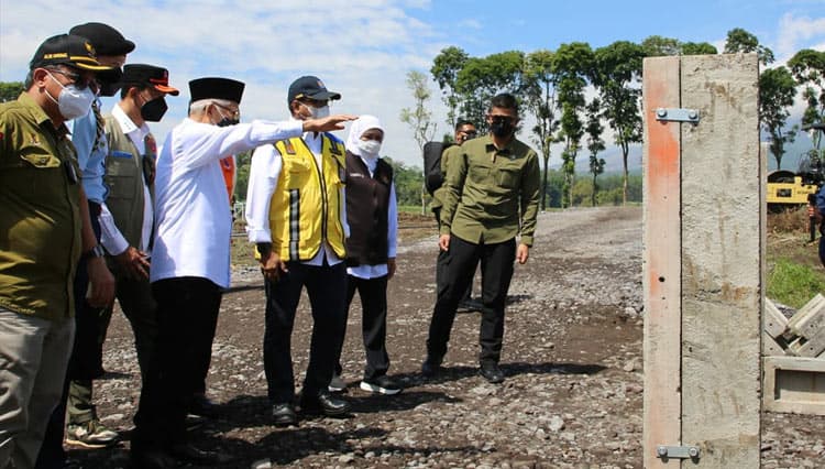 TIMES Jabar/Sekjen PUPR RI Mohammad Zainal Fatah dampingi Wapres RI KH Ma'ruf Amin meninjau lokasi pembangunan Hunian Sementara (Huntara) bagi korban terdampak erupsi Gunung Semeru di Desa Sumbermujur, Kecamatan Candipuro, Kabupaten Lumajang.