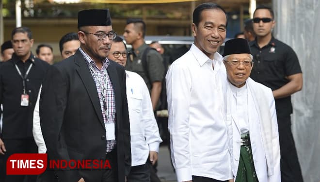 TIMES Jabar/Presiden terpilih, Jokowi, saat tiba di Gedung KPU RI, Minggu (30/06/2019). (FOTO: Hasbullah/TIMES Indonesia).
